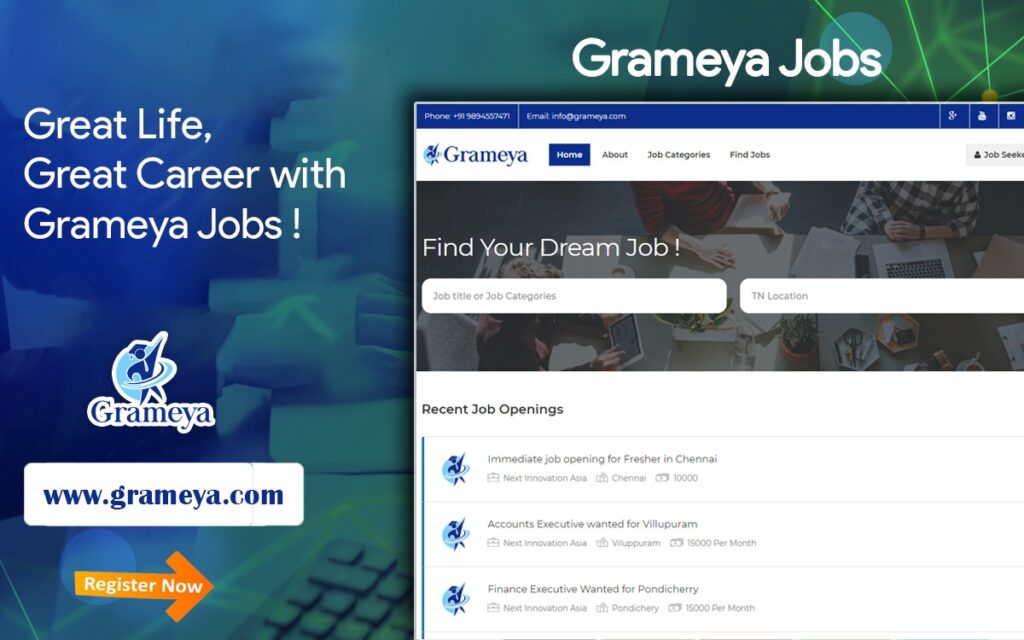 Grameya.com Free Job posting Portal is started to give the best job support to Job seekers and Job posting and Resume search support services to Employers in all over Tamil Nadu.